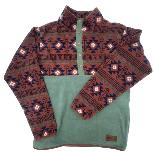Unisex 1/2 Button Aztec W/ Nait Logo Leather Patch (Aztec/Green)